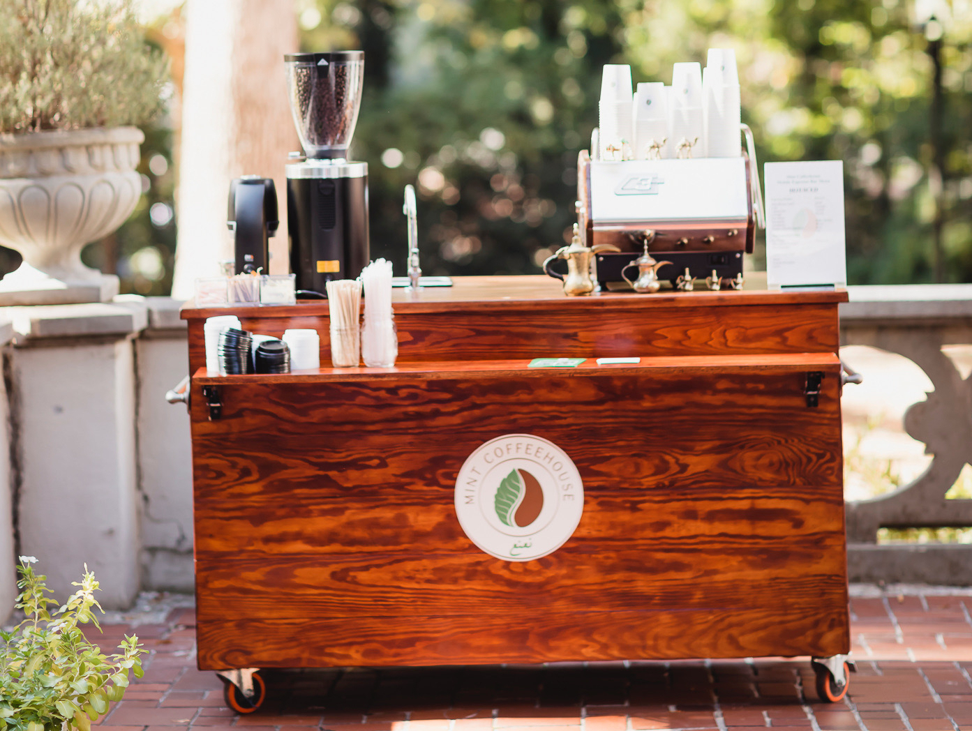The espresso bar on wheels fits perfectly for any size space or gathering and for events of any size.